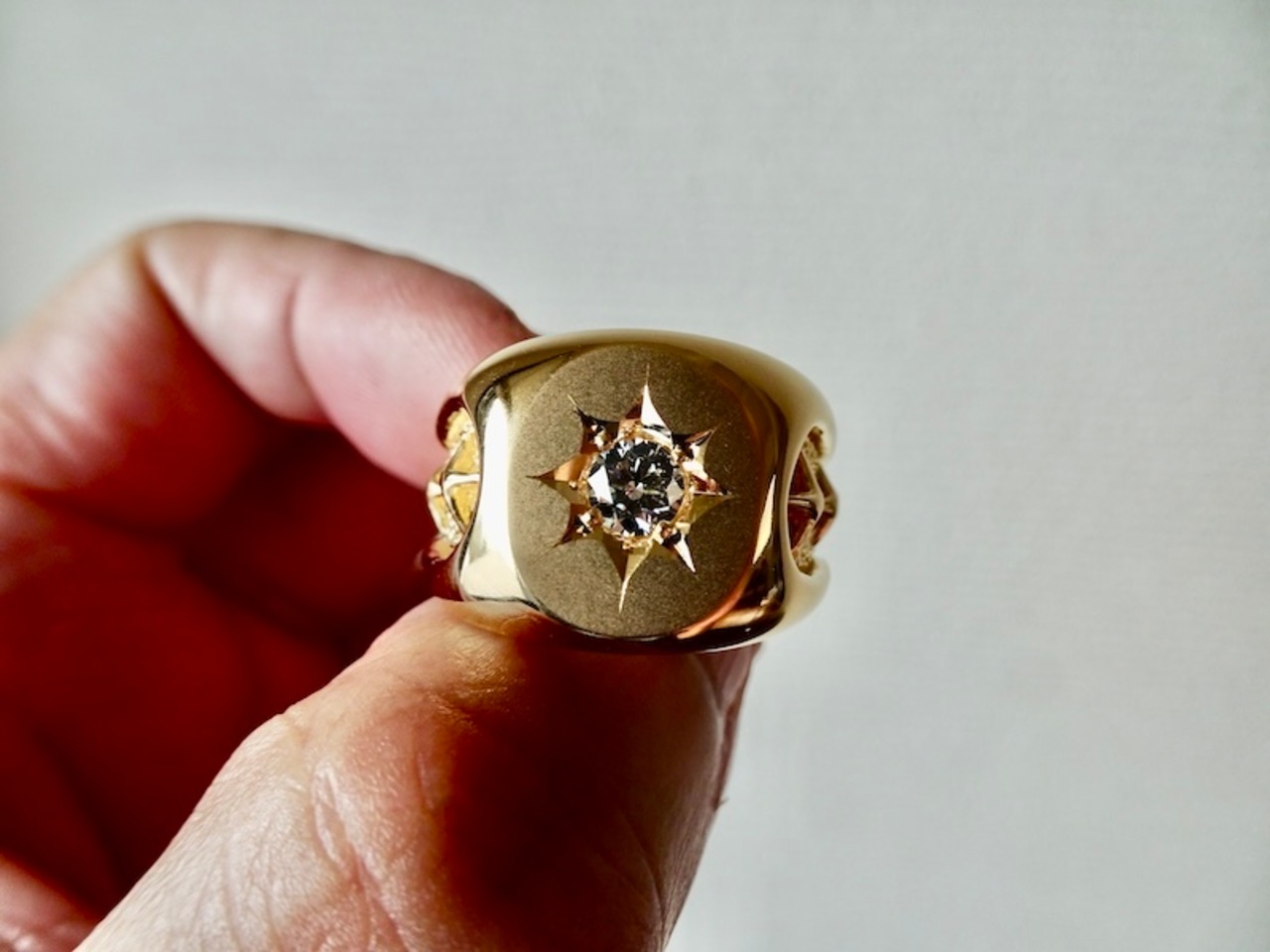 仁尾彫金『一つ星ジルコニア、k18、ギャラクシー楕円の印台リング』ハンドメイド344