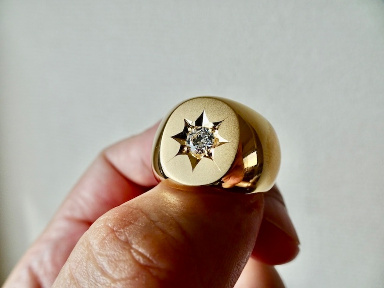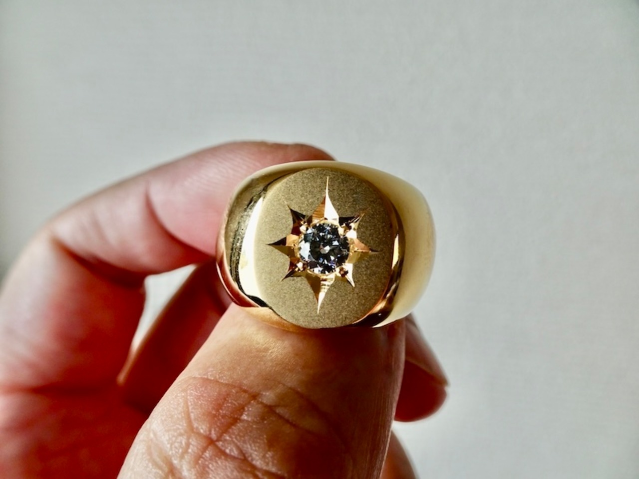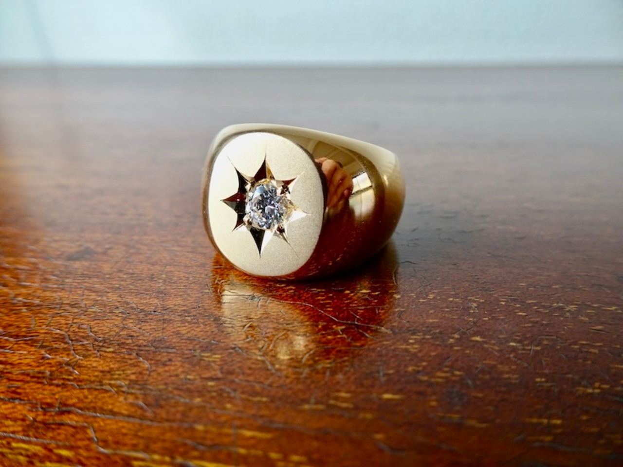 仁尾彫金『一つ星ジルコニア、k18、楕円の印台リング2』ハンドメイド343