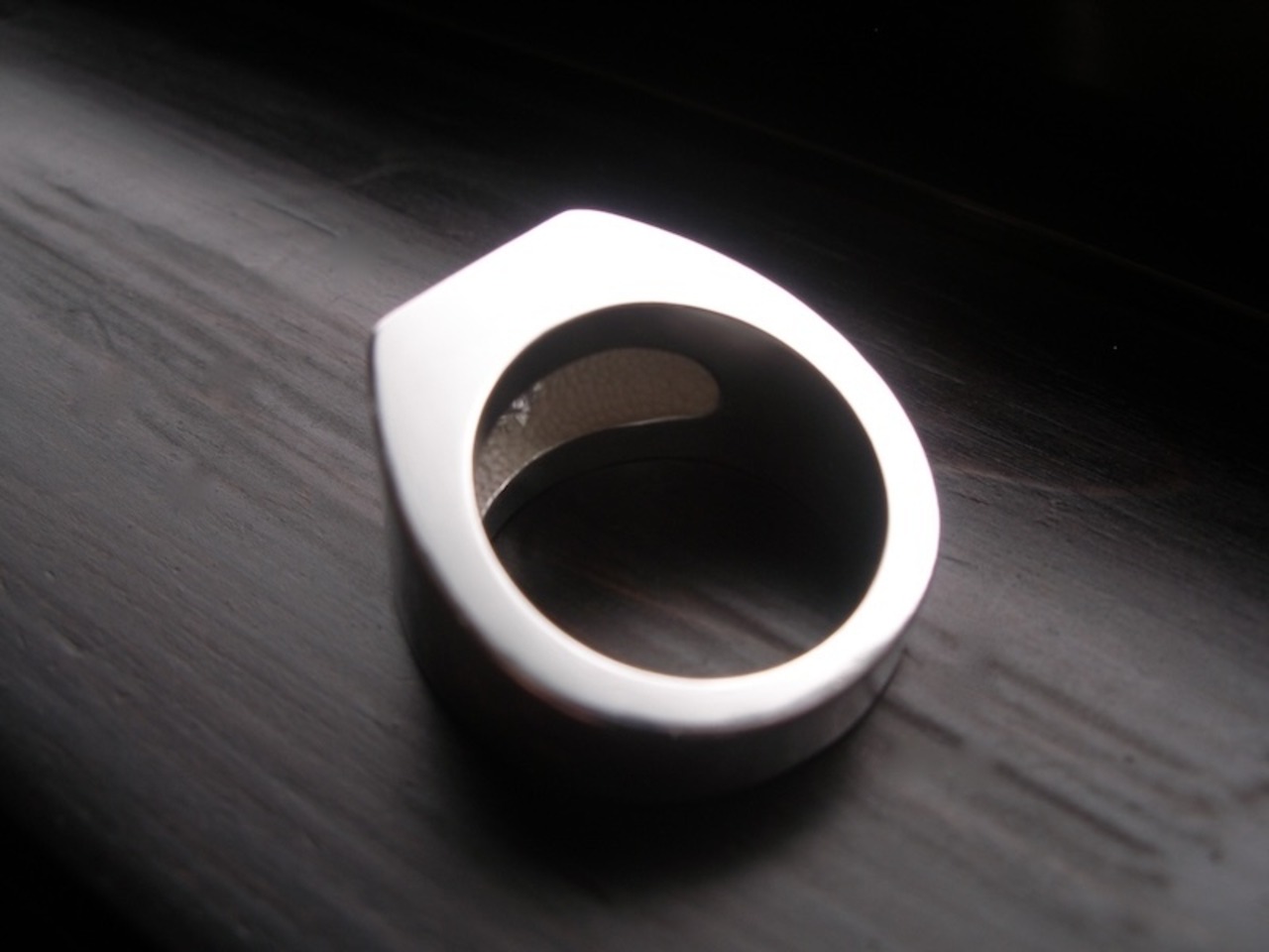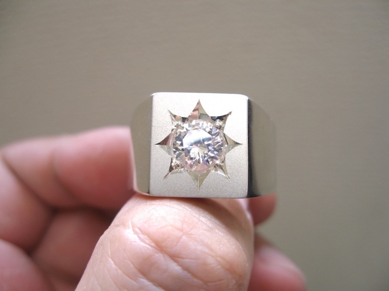 仁尾彫金『一つ星ジルコニア、プラチナ印台リング』ハンドメイド148