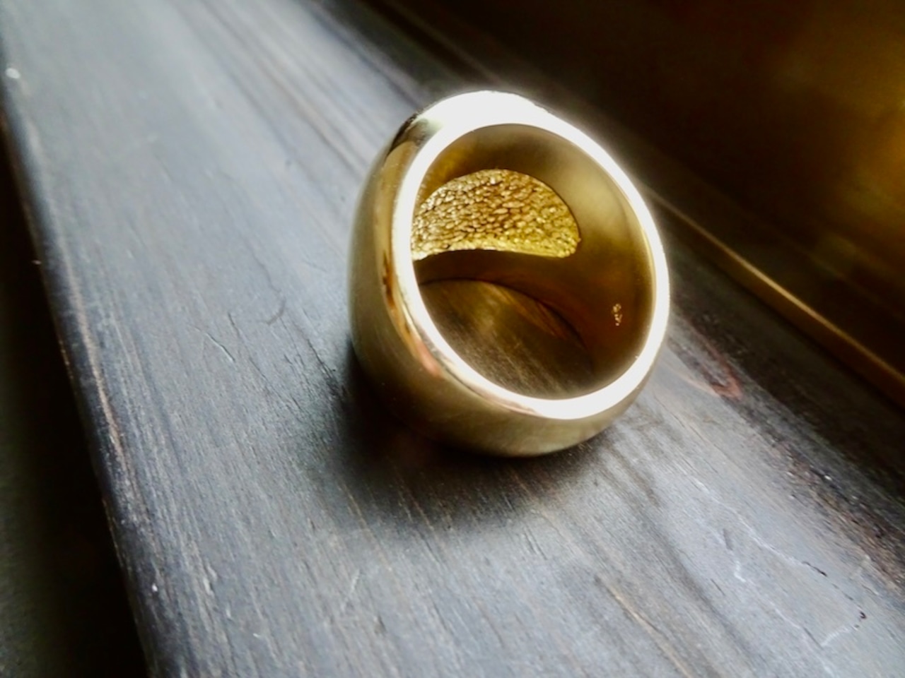 仁尾彫金『楕円のk18印台リング、ヘアライン』ハンドメイド349
