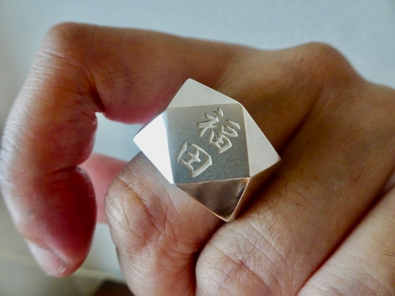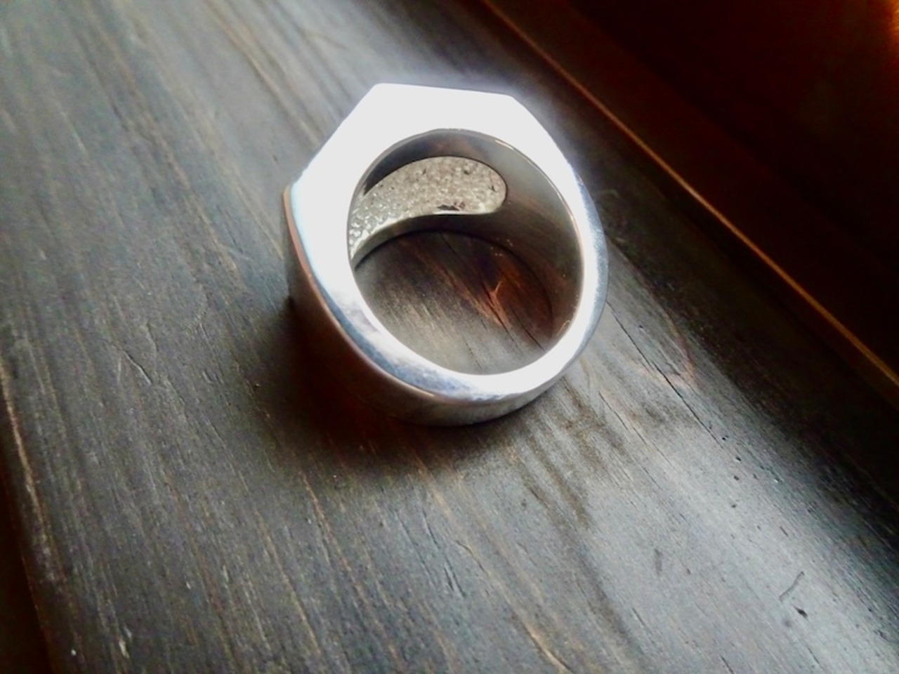 仁尾彫金『文字彫りブロック、プラチナリング』ハンドメイド352