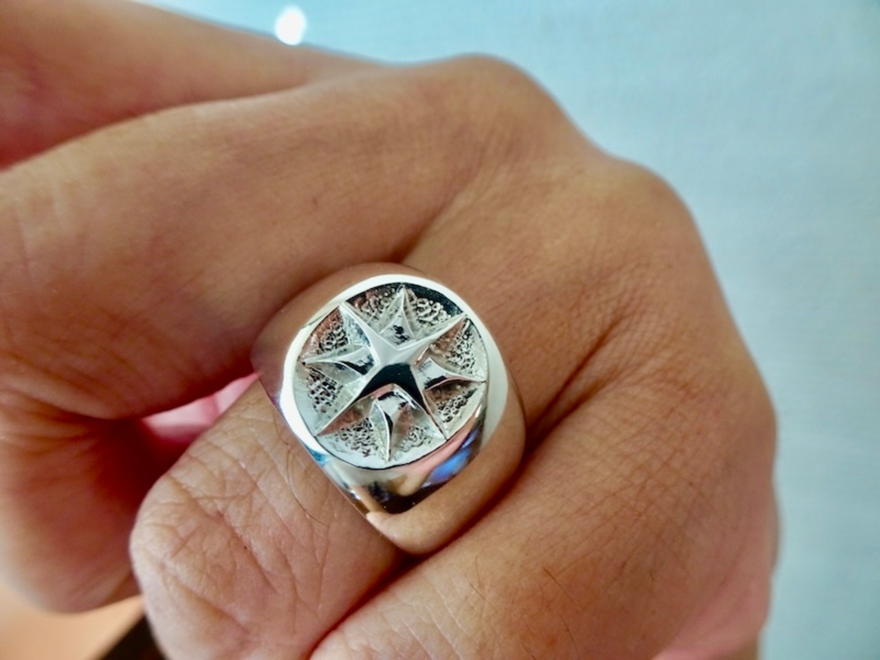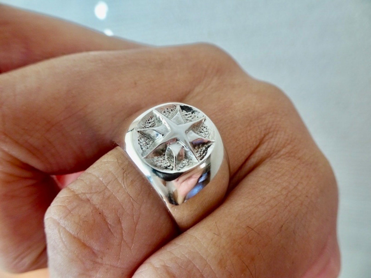 仁尾彫金『プラチナ十字星リング』ハンドメイド354b