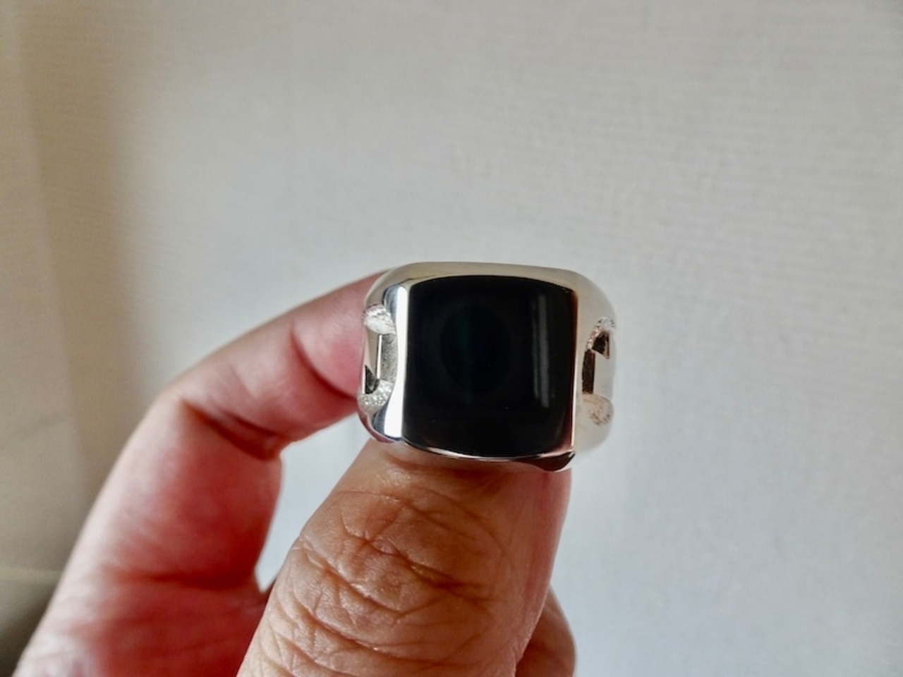 仁尾彫金『プラチナ、サンダー印台リング、磨き』ハンドメイド360