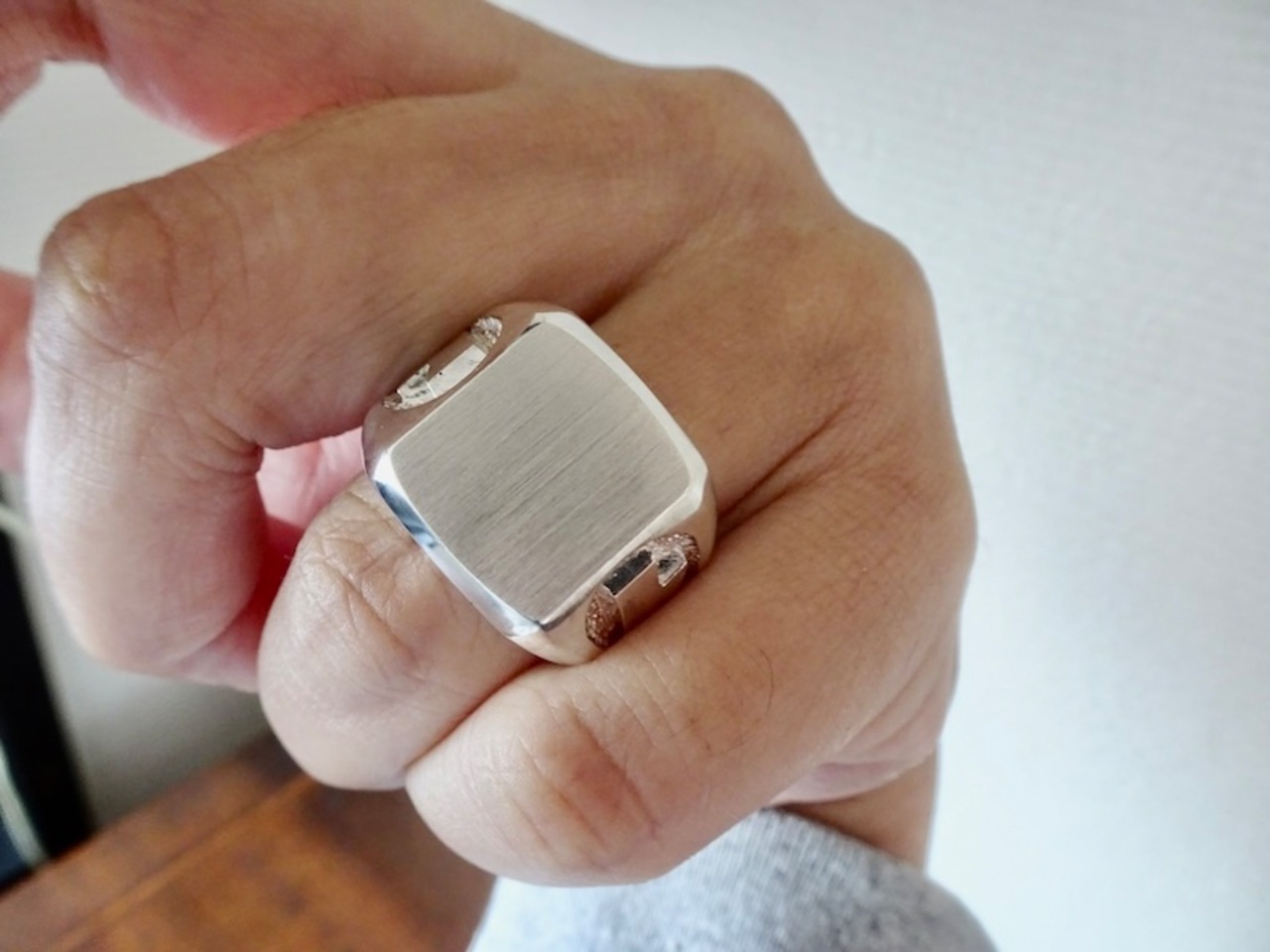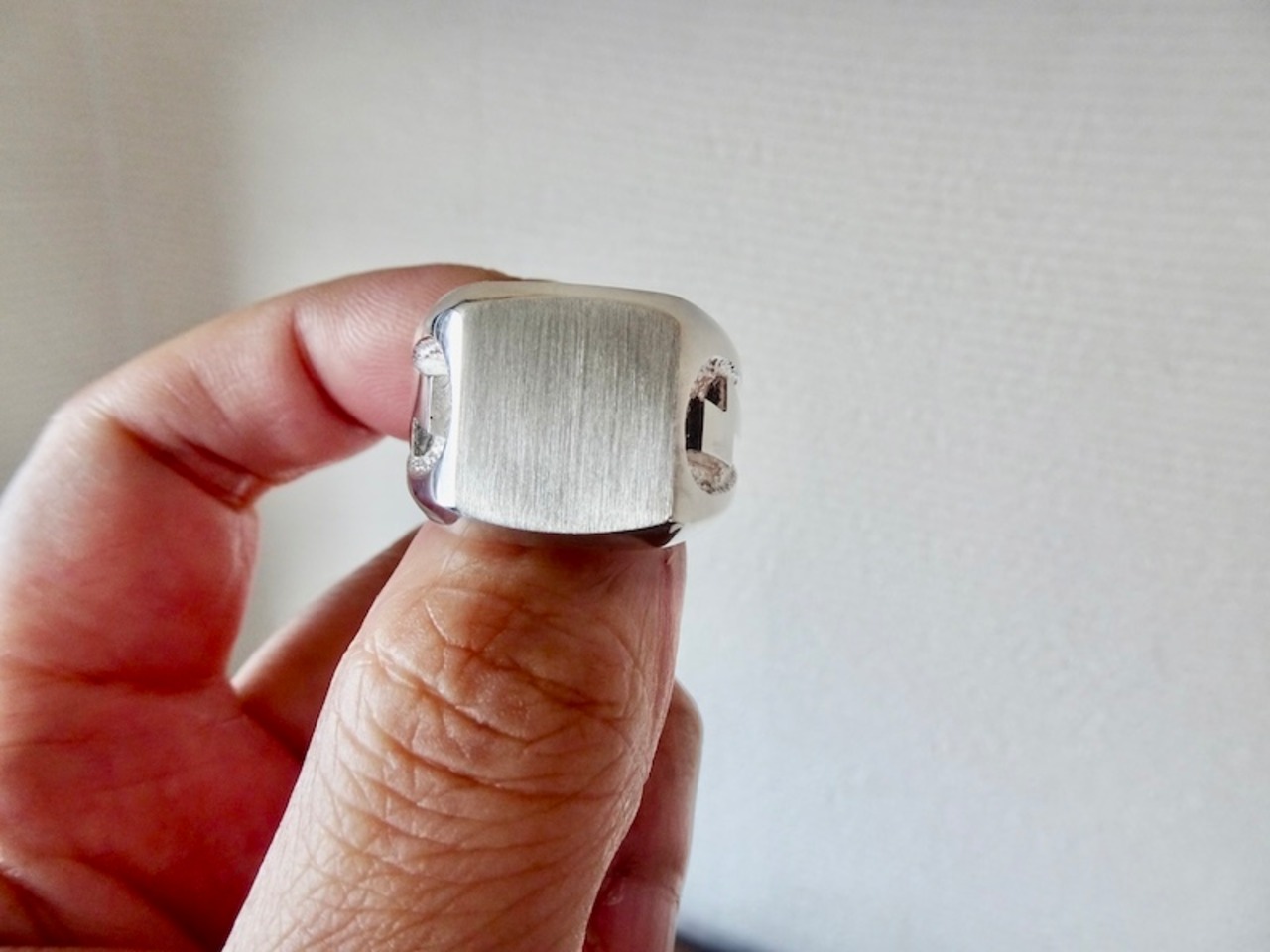 仁尾彫金『プラチナ、サンダー印台リング、ヘアライン』ハンドメイド361