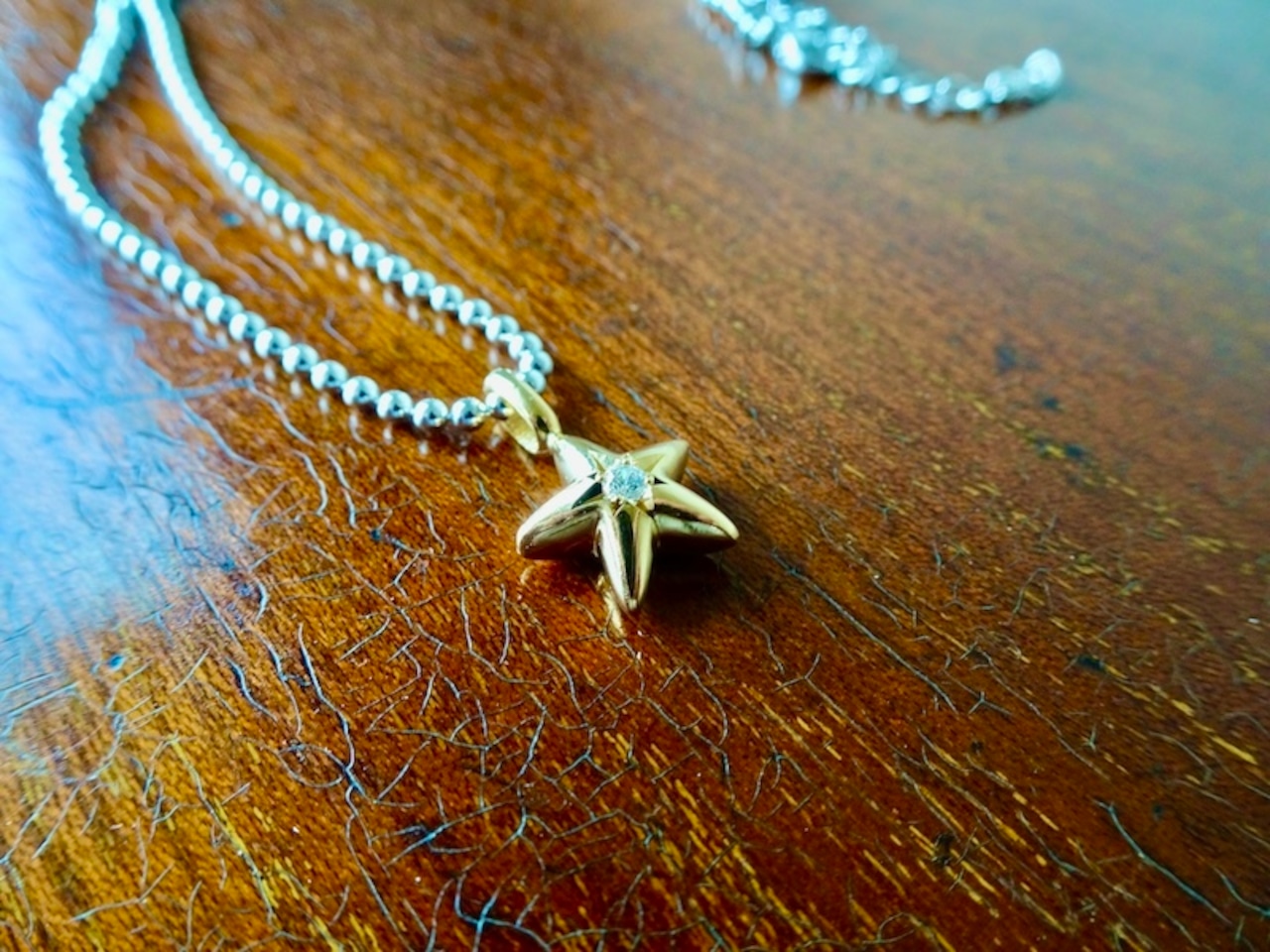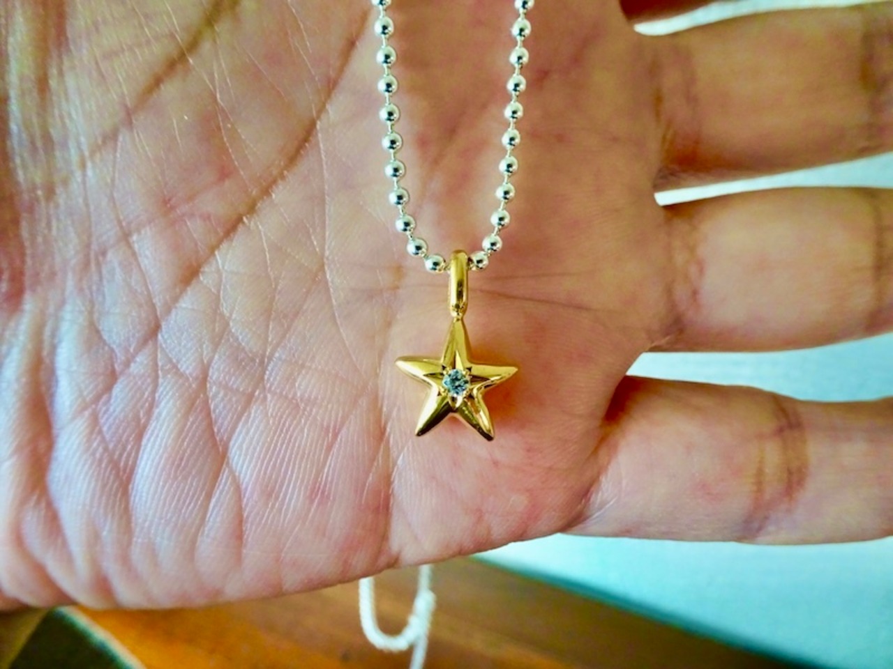 仁尾彫金『一つ星ダイヤ、k18、ぷっくりスターペンダント』ハンドメイド363