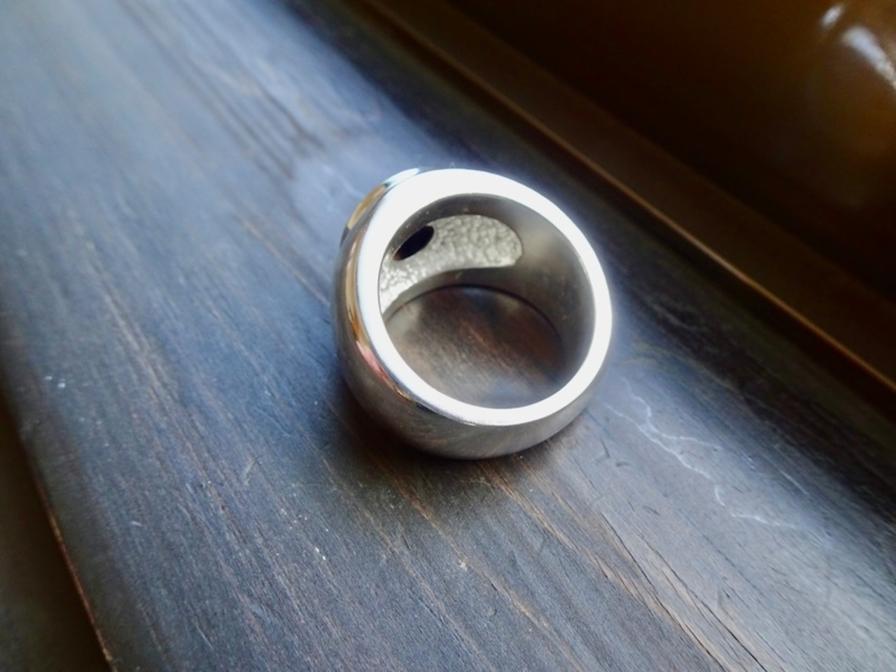 ごらん頂きありがとうございます。 オリジナルブランド 仁尾彫金『k18カボションリング2』を出品致します。オリジナルのアクセサリーを自ら制作しています。今回、最大幅1.6cmのシルバーリングにk18のカボションパーツを覆輪留め致しました。k18の重量は約2.5gになります。最大厚みは6mm強と肉厚です。重量も約23gとしっかりとした作りになっています。リングシルバーなので使い込むと独特の味が出てきk18のカボションパーツはゴールドに輝き続けます!!オリジナリティを追求しデザイン、制作を私自身で行っている為、今回、新品をご用意致します!!