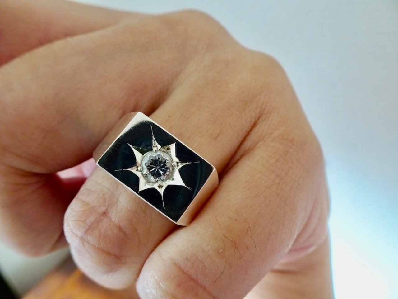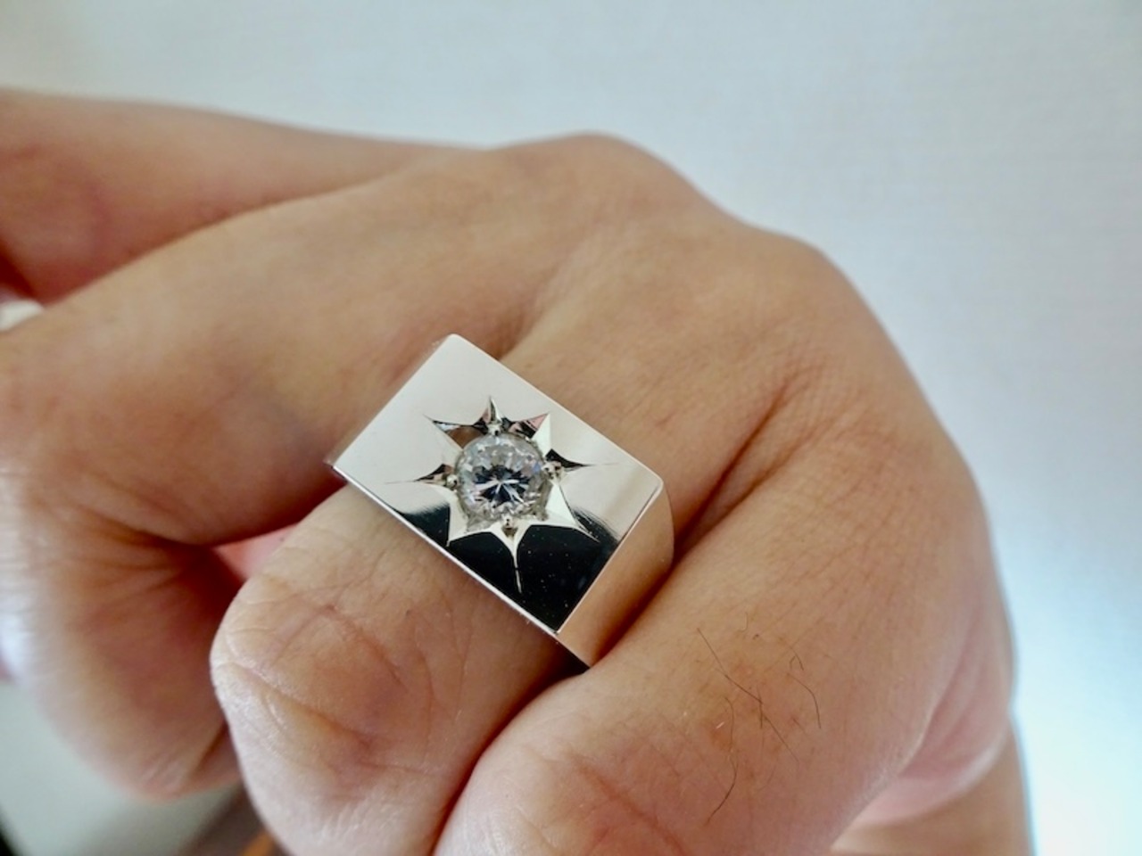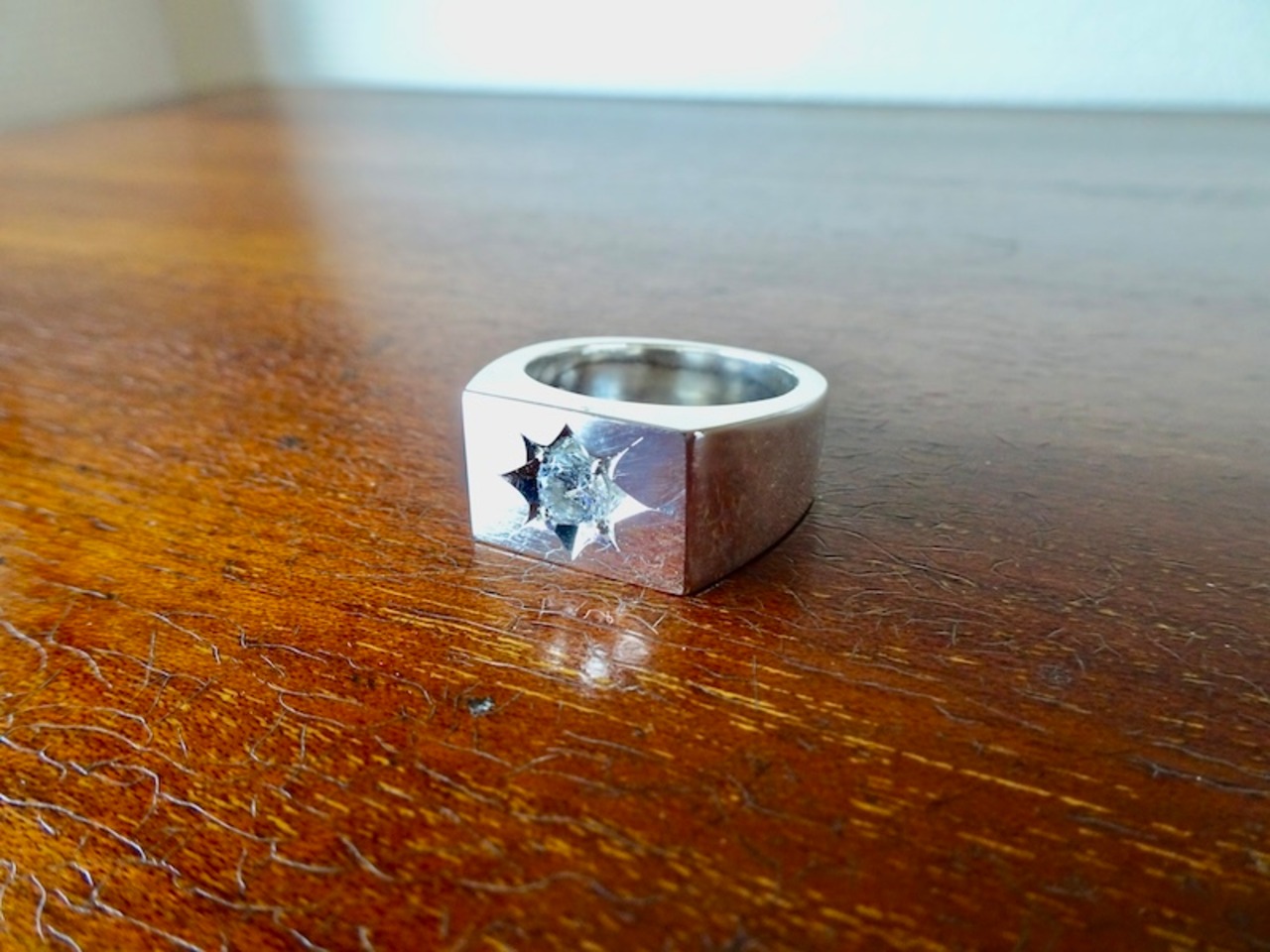 仁尾彫金『一つ星5mmジルコニア、プラチナ印台リング、磨き』ハンドメイド373
