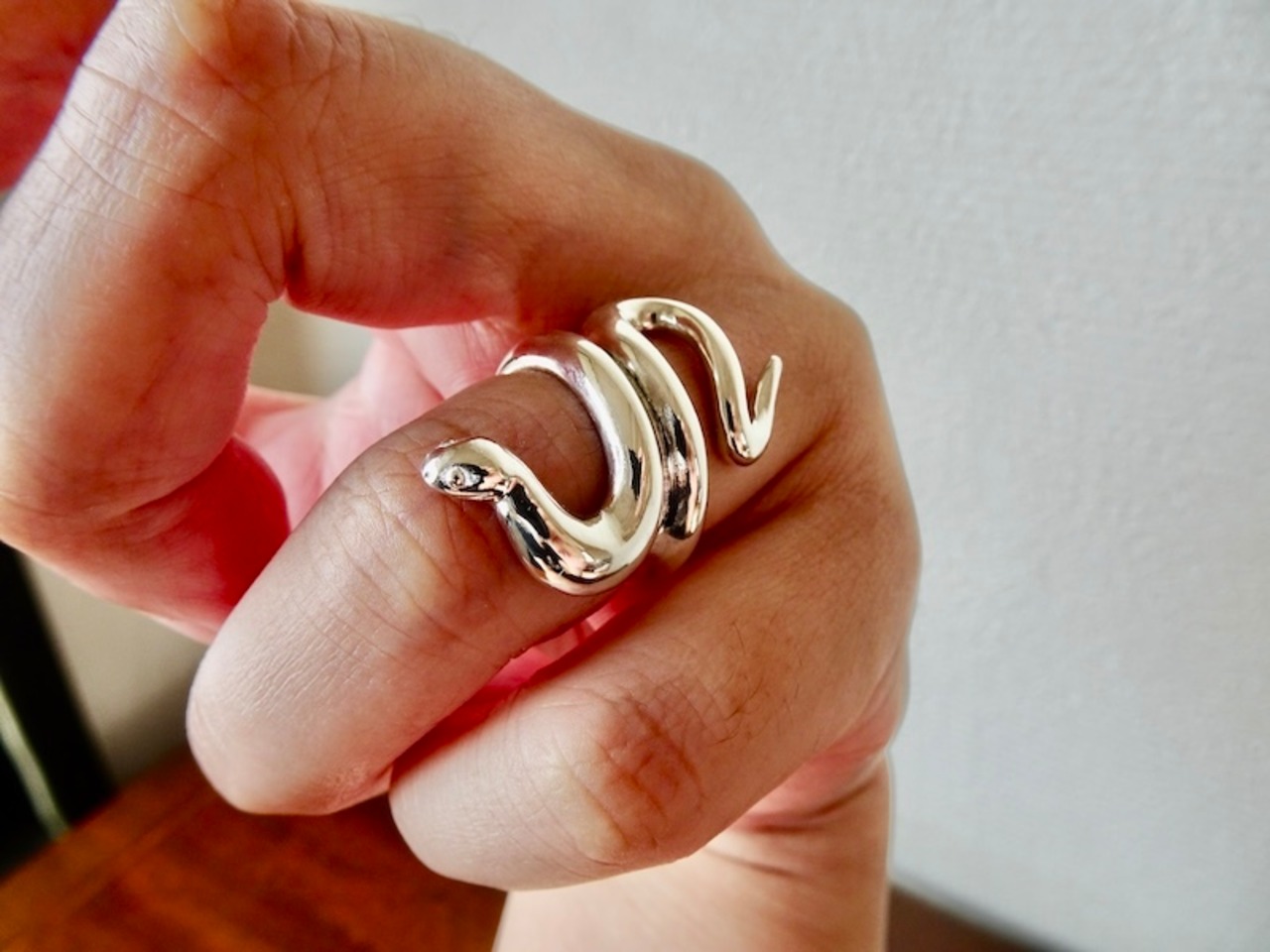 仁尾彫金『プラチナ白蛇リング』ハンドメイド378